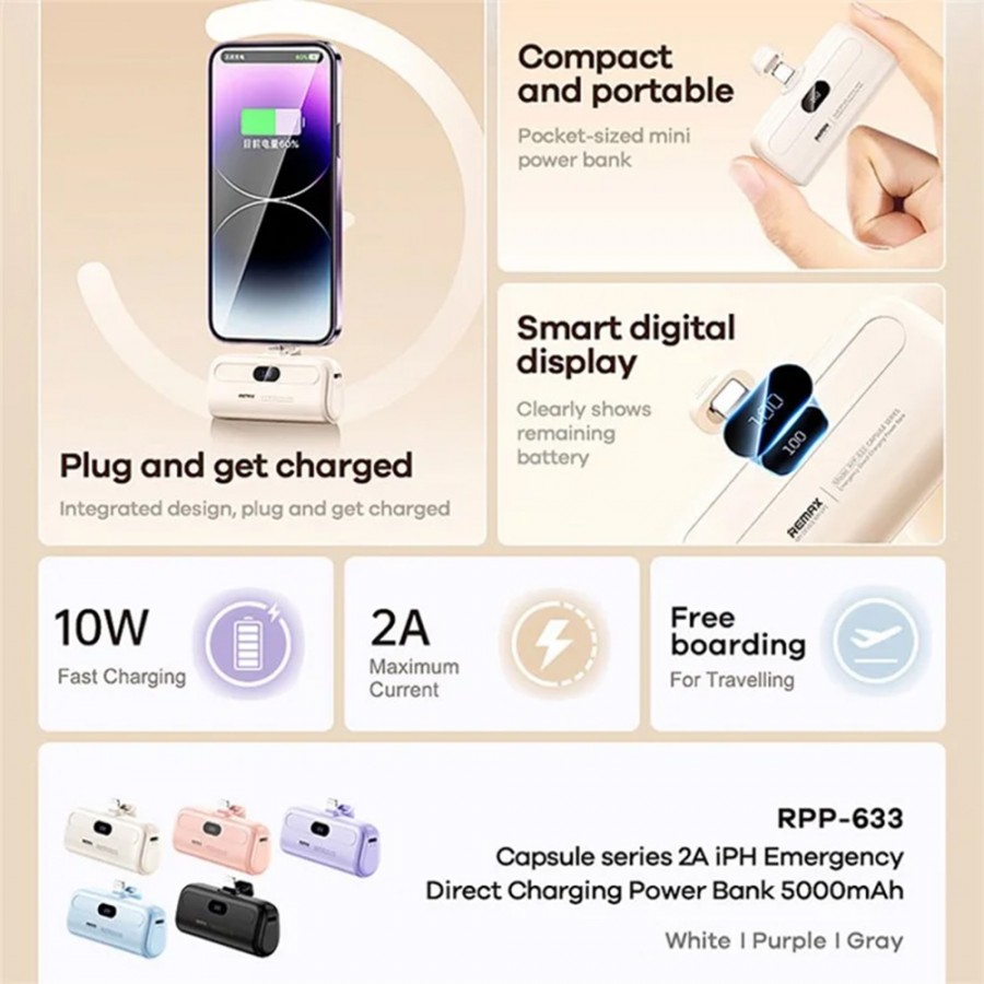 Το Power Bank Remax RPP-633 διαθέτει ψηφιακή οθόνη για εύκολη ορατότητα της κατάστασης της μπαταρίας.
