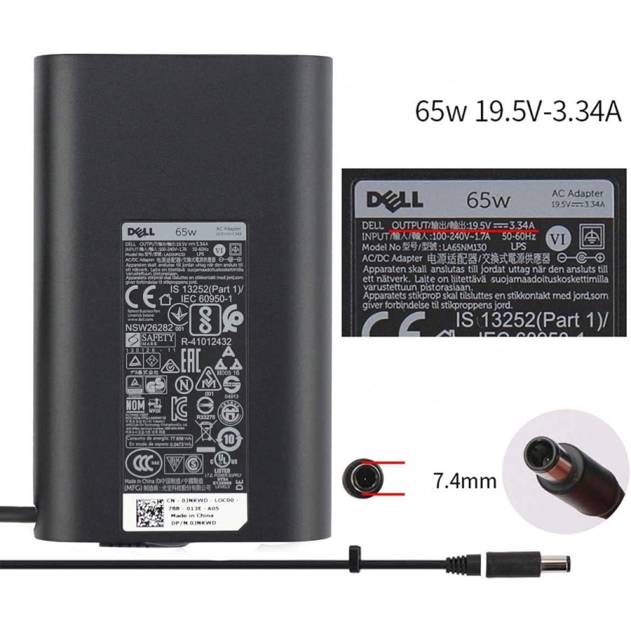 Item Name: Dell 19.5V 3.34A 65W Adapter Input: 100-240V 50-60Hz 1.5A Adapter Output Voltage: 19.5V Adapter Output Current : 3.34 A. Adapter power: 65 W. Weight (adapter only): 310 g. Connector size: 7.4 x 5.0mm. Warranty: 1 Years This item is compatible with the following adapter models: