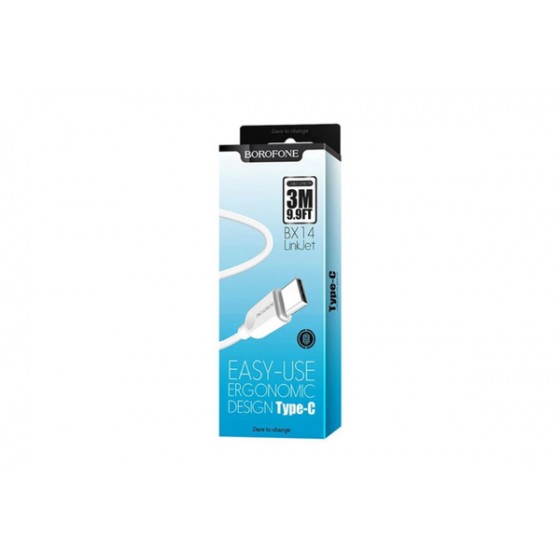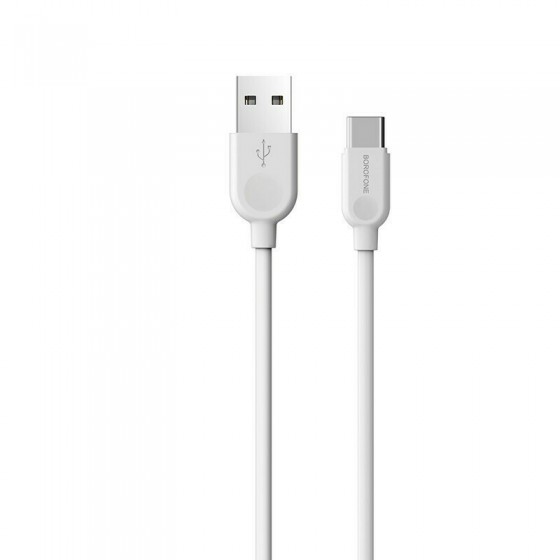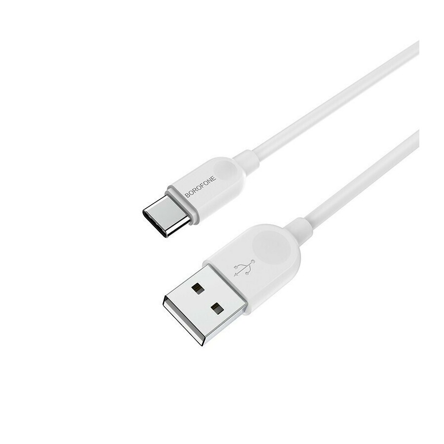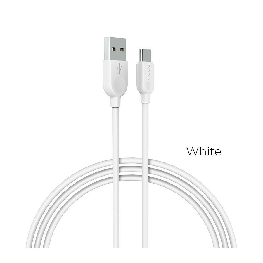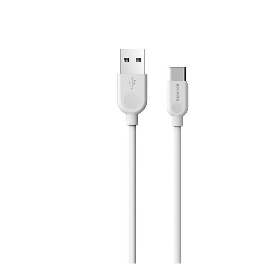 Καλώδιο της εταιρίας Borofone που συνδέει την συσκευή με υποδοχή type-c στη θύρα USB του υπολογιστή ή του φορτιστή για συγχρονισμό και φόρτιση.