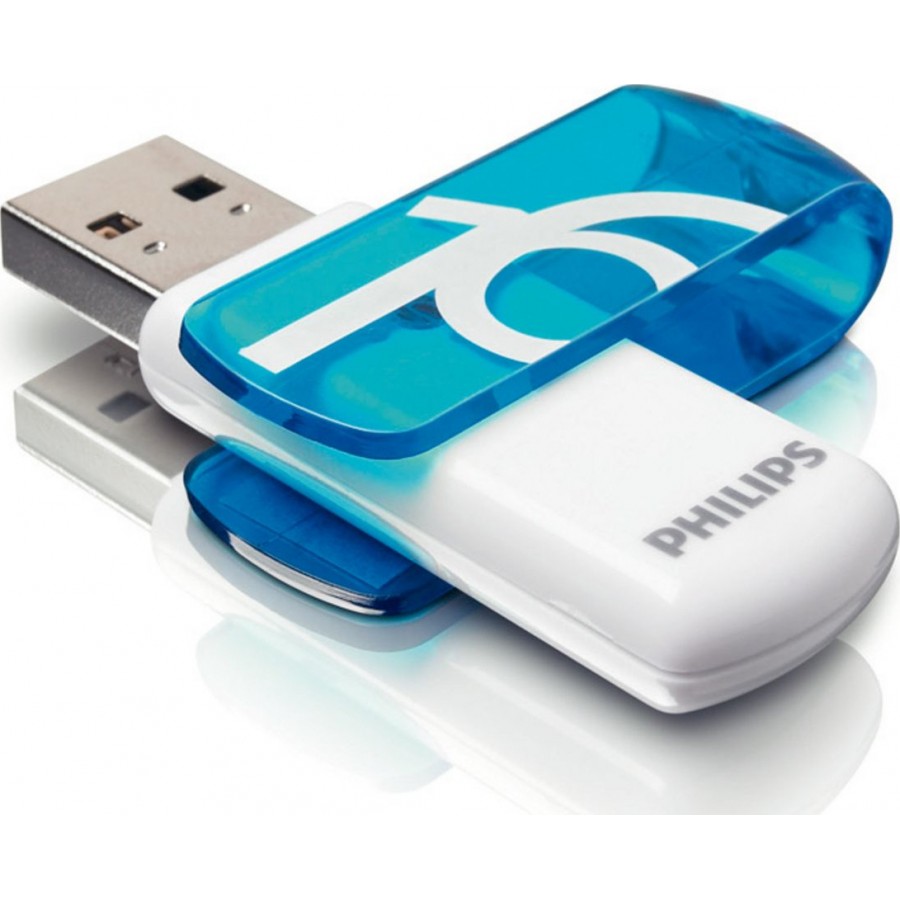 USB Stick της εταιρίας Philips που διαθέτει χωρητικότητα 16GB. Υποθέτοντας ότι το μέσο μέγεθος για μια φωτογραφία, ένα MP3 και ένα Video είναι 2MB, 4MB και 500MB αντίστοιχα, τότε το μέγεθος αυτού του USB μπορεί να αποθηκεύσει περίπου έως 7.500 φωτογραφίες, ή 4.000 MP3 ή 30 Video.